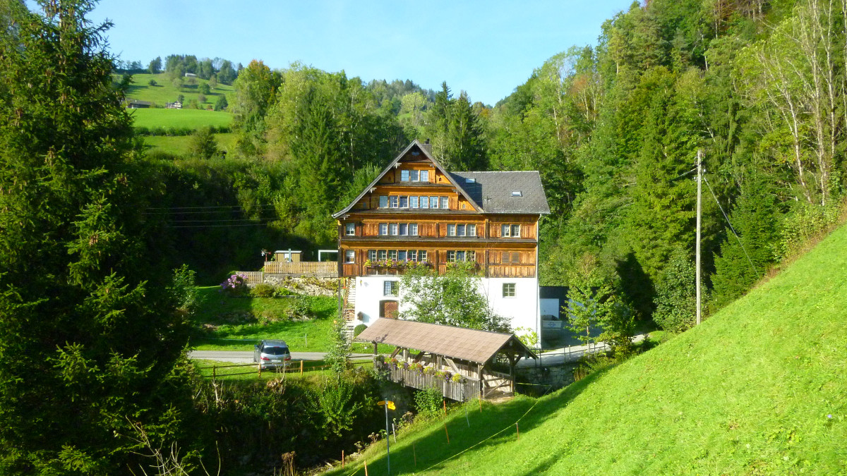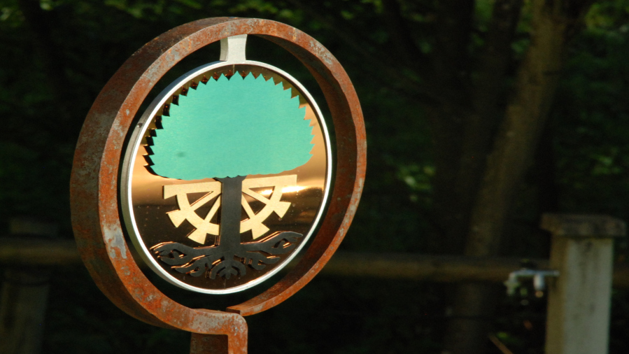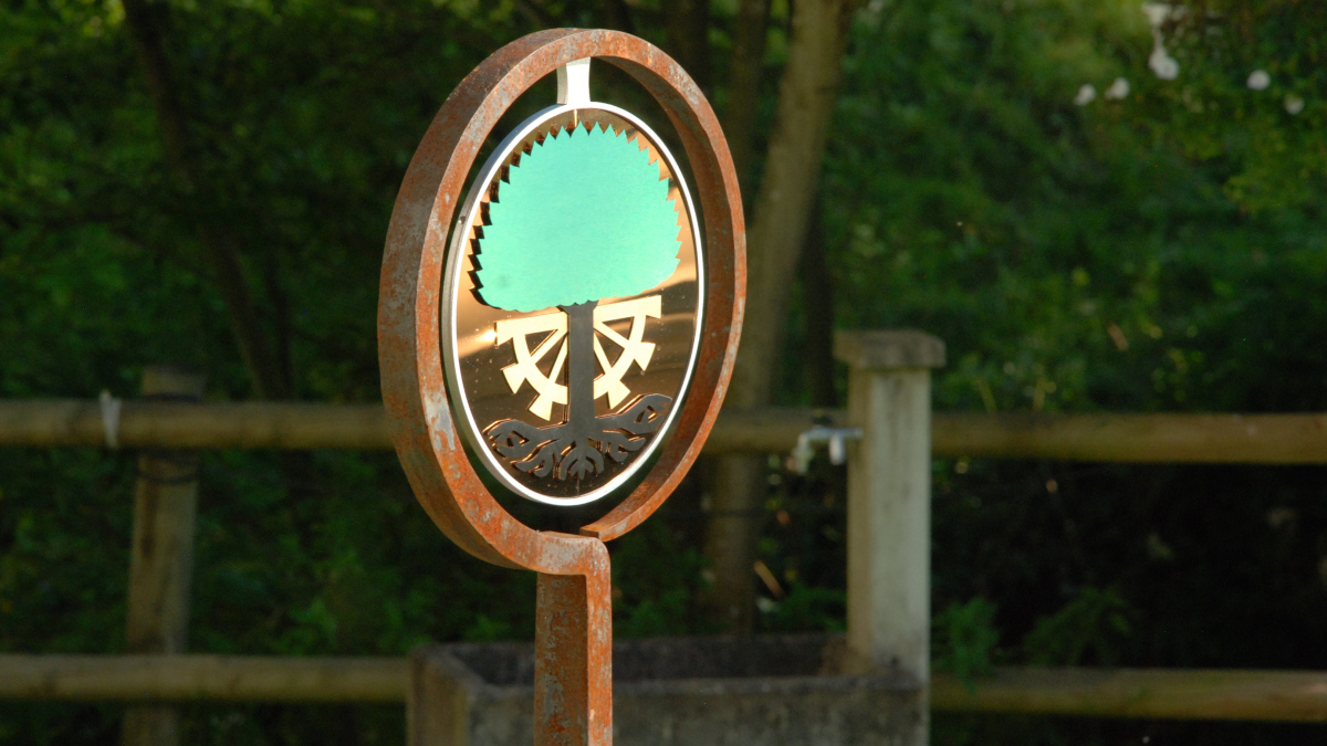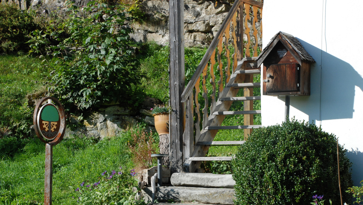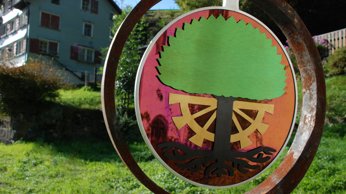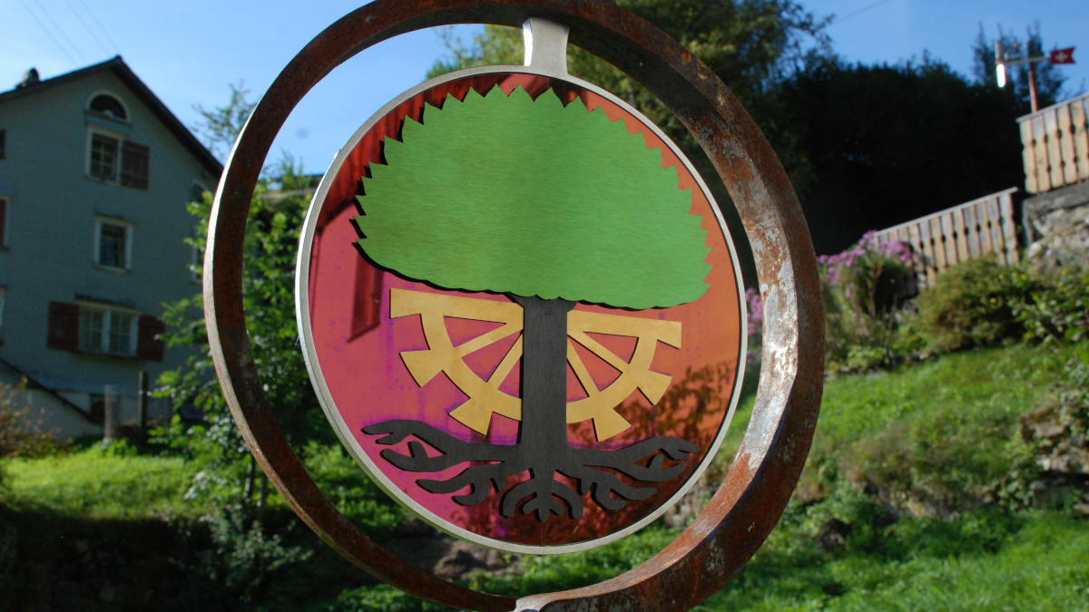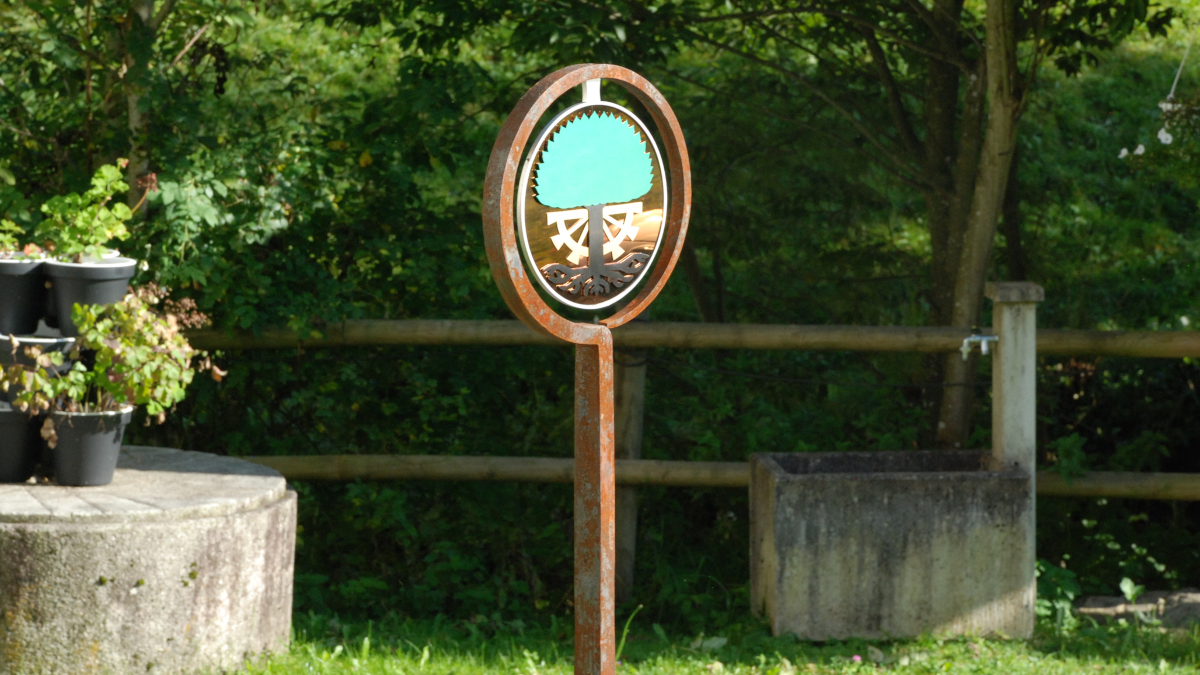 Das Ringeisen, liebevoll geschmiedet, steht schon eine Weile an dem idyllischen Ort im Toggenburg. Aber etwas fehlte noch. Die Schmidin hat noch eine Menge weitere Projekte. Eine Bekannte verwies daher die Besitzer des Idylls an mich. Ich hätte sicher eine Idee. Wir haben überlegt, was passen könnte. Farbig sollte es schon sein. Metall wäre auch nicht schlecht. Nicht nur wegen dem Verwittern. Ein paar Wochen zuvor entdeckte ich farbiges Edelstahlblech. Also statt geschmiedet - gelasert. Nach einigen Entwürfen und Erwägungen war klar, dass es dieses Blech sein soll. Einmal mehr Neuland - irgenwie ziehe ich das an :-). Schmiedeisen und Edelstahl? Warum auch nicht? Dank guten Lieferanten, Geduld und dem ein oder anderen Einfall ist es gelungen. Das Namenswappen macht sich wirklich gut und spielt wunderschön im Licht.